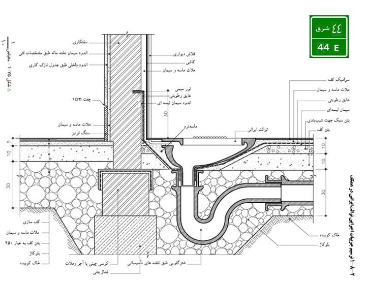 -2 عایقکاری کف توالت باید در زیر سنگ توالت به صور ت یکپارچه قرار گرفته و تا داخل لوله ی فاضلاب ادامه یابد.